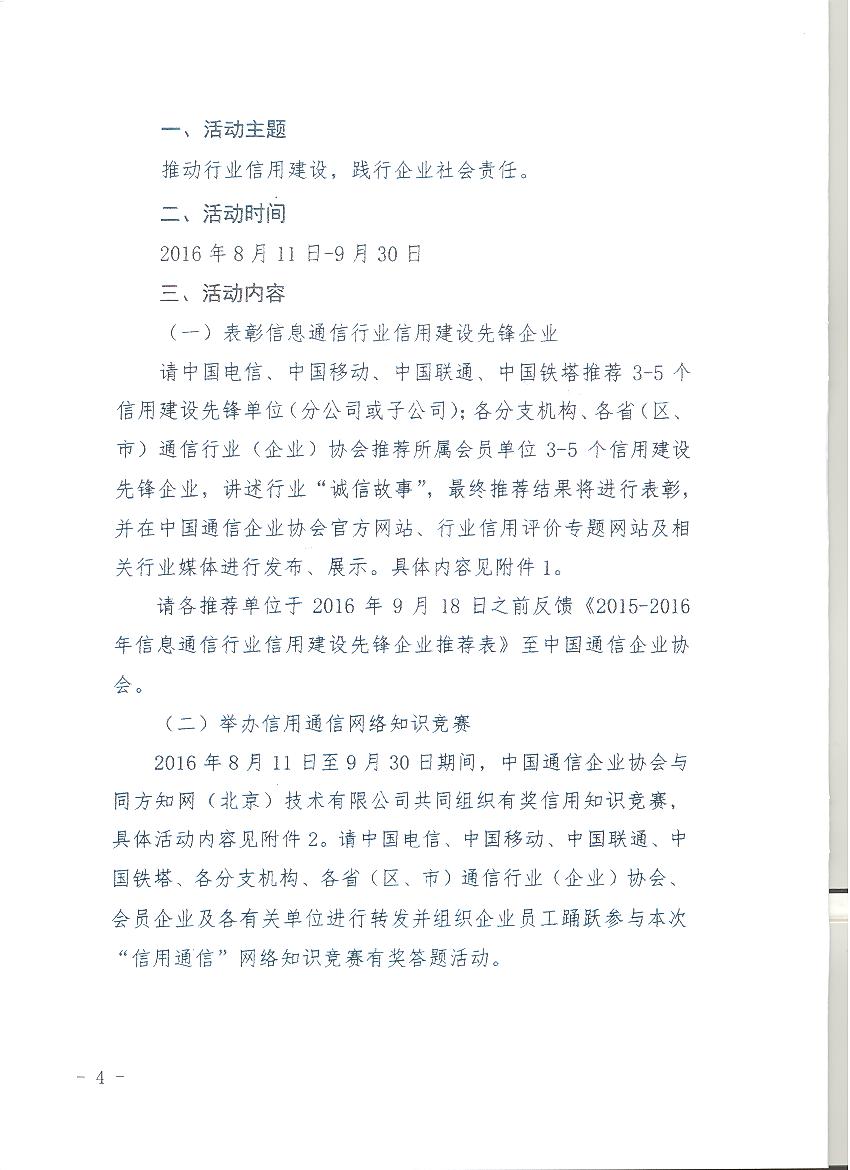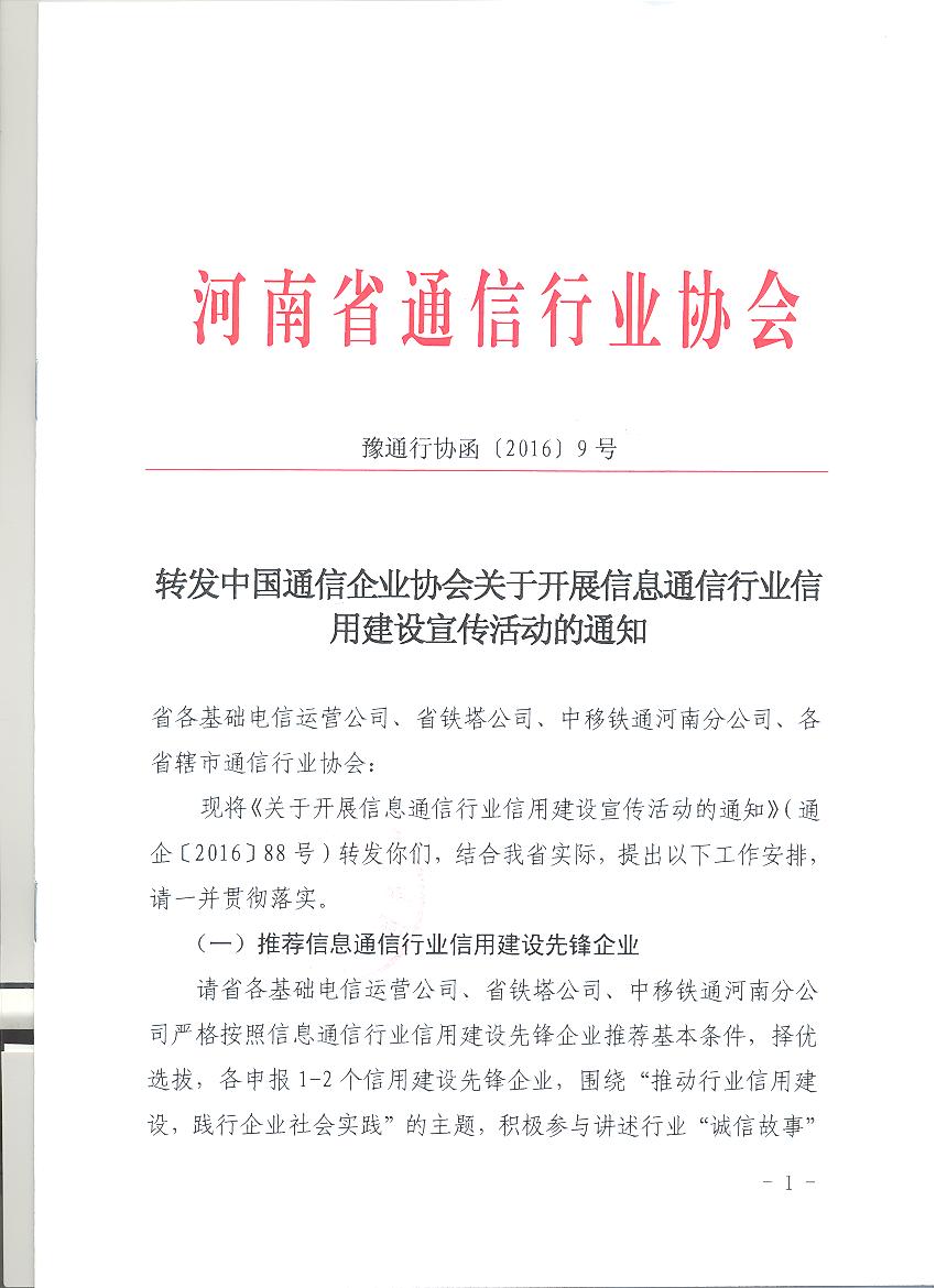 轉(zhuǎn)發(fā)中國通信企業(yè)協(xié)會(huì)關(guān)于開展信息通信行業(yè)信用建設(shè)宣傳活動(dòng)的通知