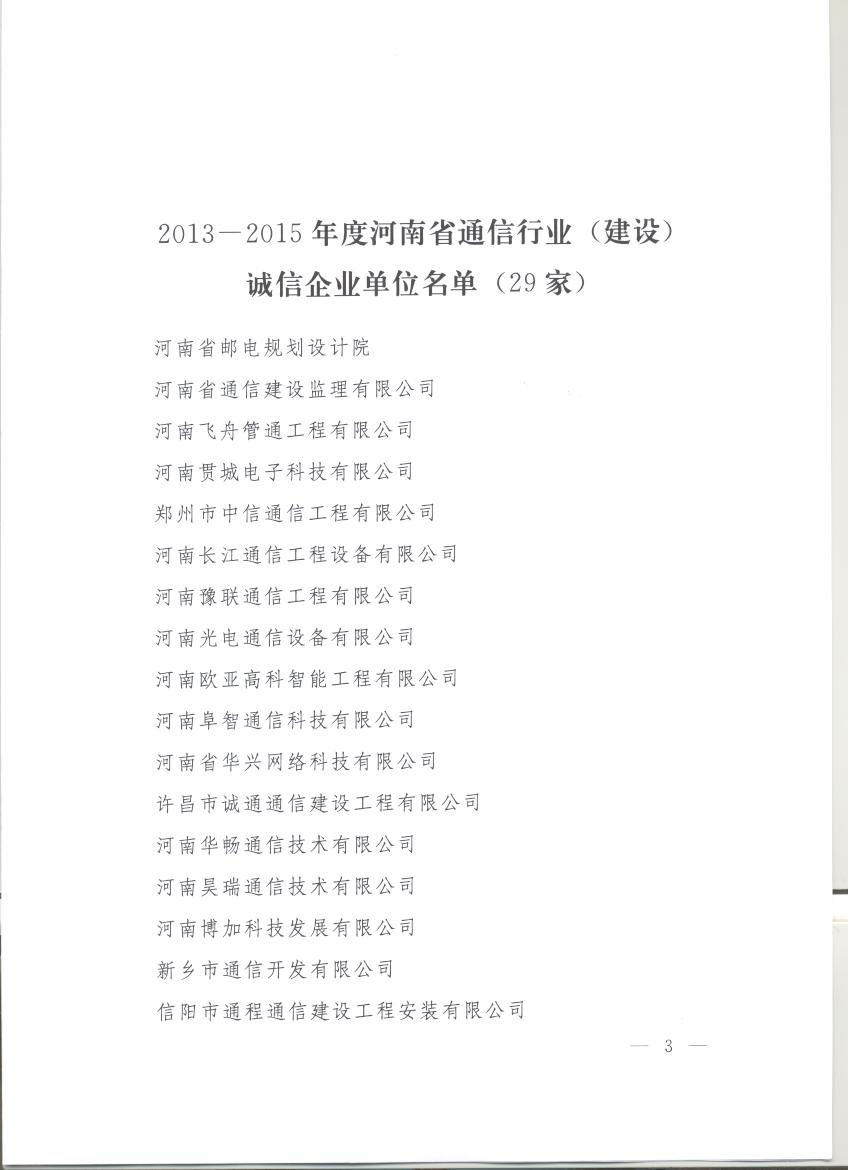 河南省通信管理局 河南省信用建設促進會 河南省通信行業(yè)協(xié)會關(guān)于表彰2013—2015年度河南省通信行業(yè)誠信企業(yè)的通報