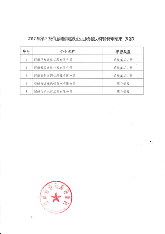 關(guān)于公布2017年第2批信息通信建設(shè)企業(yè)服務(wù)能力評價企業(yè)