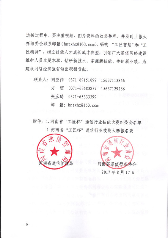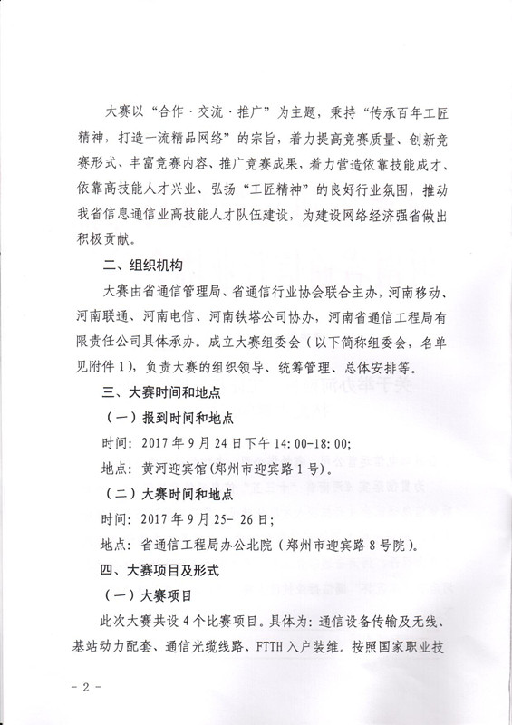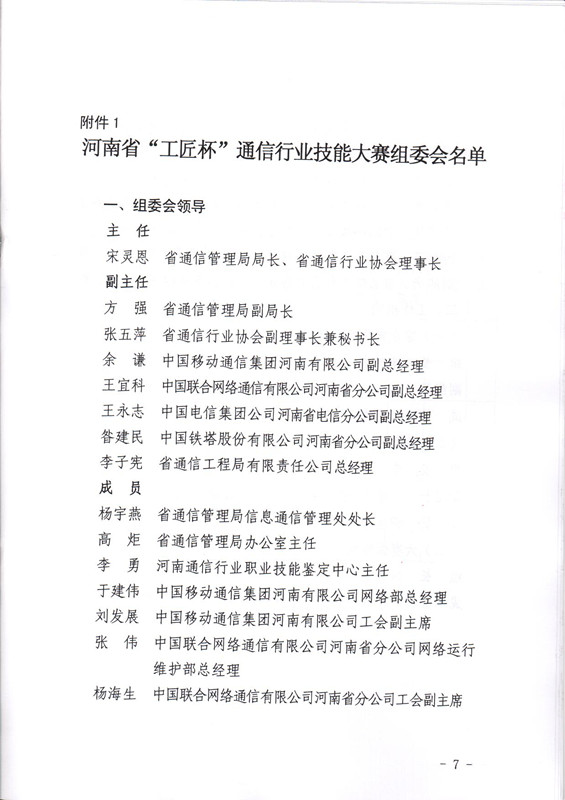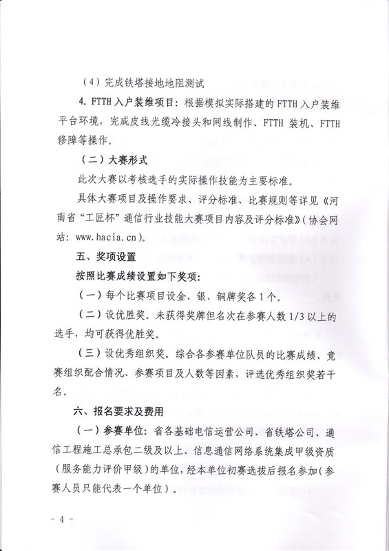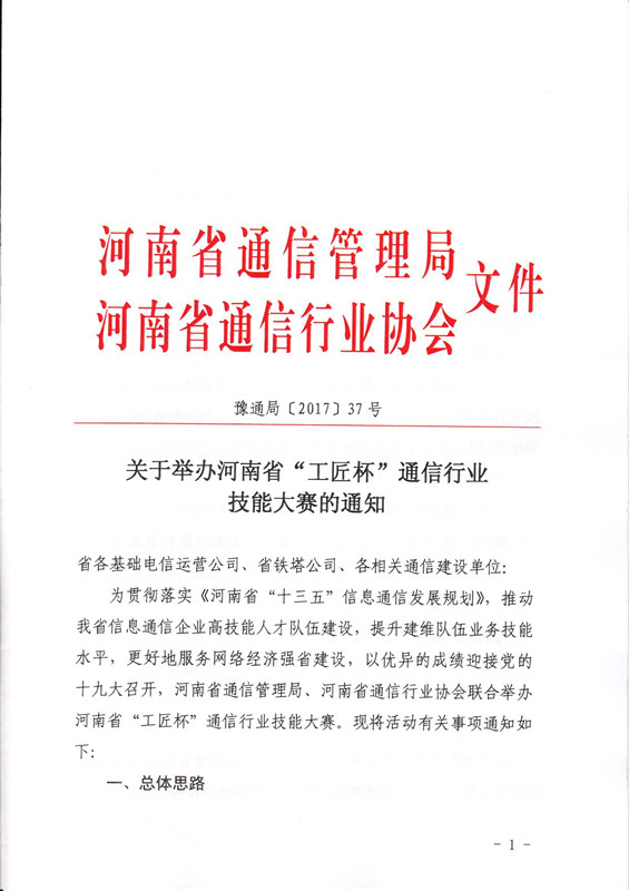 關(guān)于舉辦河南省“工匠杯”通信行業(yè)技能大賽的通知