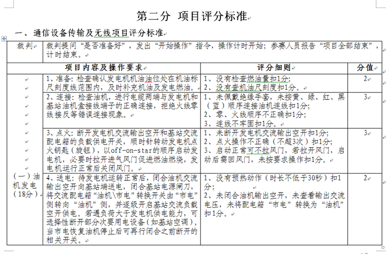 依據(jù)工業(yè)和信息化部頒布的通信設備、通信線路、光纜傳輸、通信電源等一系列國家標準、行業(yè)標準和工程技術(shù)規(guī)范,按照通信行業(yè)職業(yè)技能鑒定相關規(guī)范要求,制定了通信設備傳輸及無線、基站動力配套、通信光纜線路、FTTH入戶裝維四個競賽項目內(nèi)容、操作要求及評分標準。具體內(nèi)容如下: