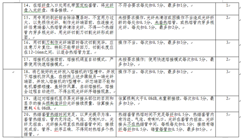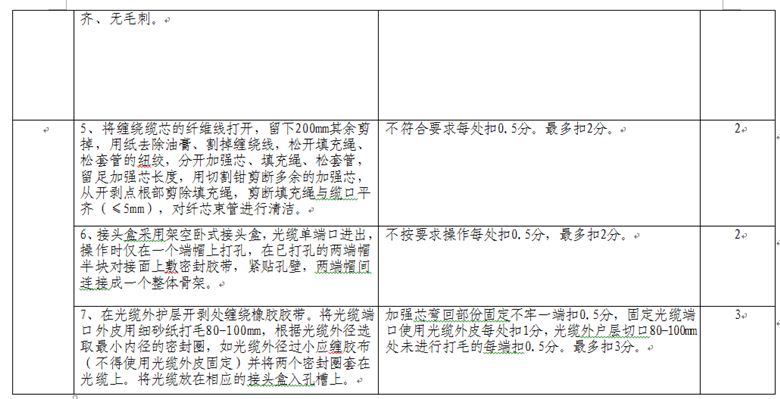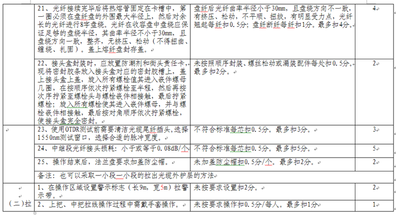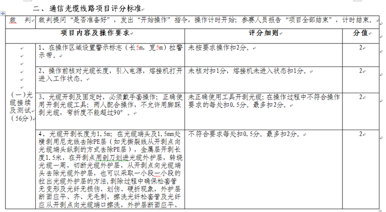競賽時間為:光纜接續(xù)40分鐘,拉線制作安裝30分鐘。