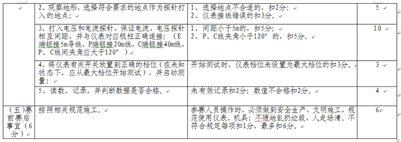 選手自帶工具:蓄電池內(nèi)阻測試儀及相關工具、在儀表校驗有效期內(nèi)的地阻測試儀(非鉗形電子地阻儀)。