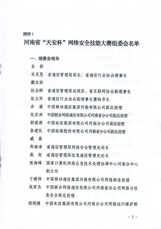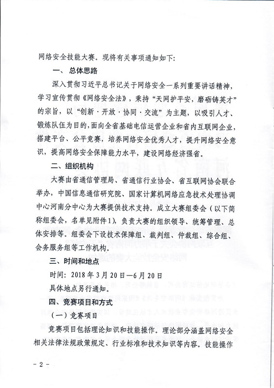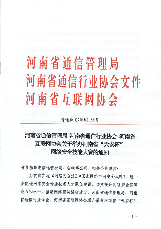 河南省通信管理局 河南省通信行業(yè)協(xié)會(huì) 河南省互聯(lián)網(wǎng)協(xié)會(huì)關(guān)于舉辦河南省“天安杯”網(wǎng)絡(luò)安全技能大賽的通知