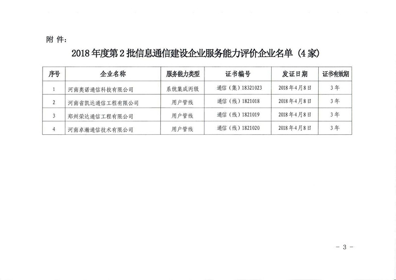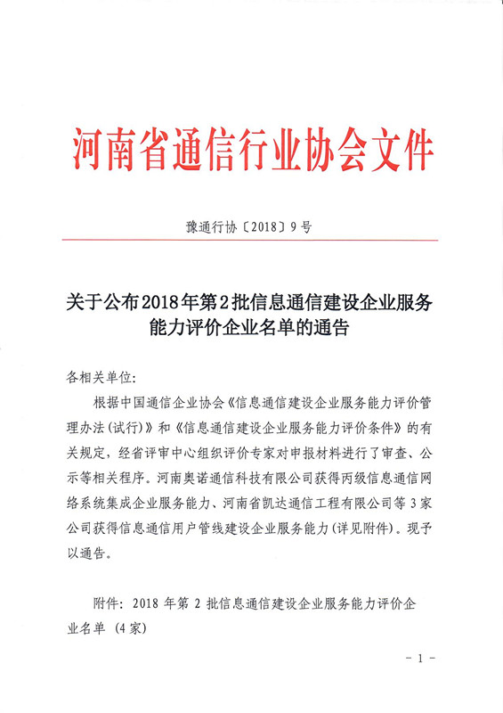 關于公布2018年第2批信息通信建設企業(yè)服務能力評價企業(yè)名單的通告
