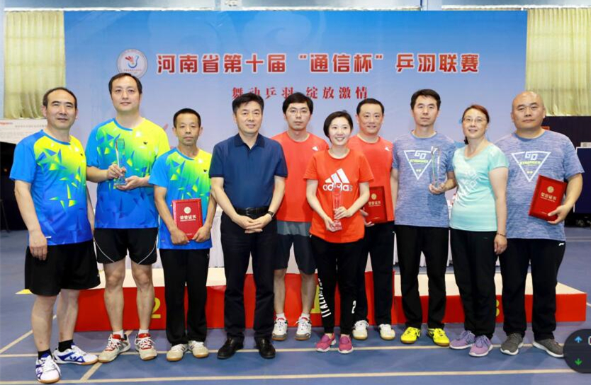 5月24- 25日,為紀(jì)念5.17世界電信和信息社會日,由省通信行業(yè)協(xié)會主辦的河南省第十屆“通信杯”乒羽聯(lián)賽在鄭州成功舉辦。本屆比賽繼承傳統(tǒng),開拓創(chuàng)新,新增了群眾基礎(chǔ)廣泛,深受大家喜愛的羽毛球項目。來自全省通信行業(yè)的24支代表隊、301名選手及領(lǐng)隊參加了比賽活動,展現(xiàn)了新時代河南通信人的精湛球技和良好風(fēng)貌。省通信管理局局長、省通信行業(yè)協(xié)會理事長宋靈恩、省通信行業(yè)協(xié)會副理事長兼秘書長張五萍以及省移動、省聯(lián)通、省電信、省鐵塔、中移鐵通河南公司的相關(guān)領(lǐng)導(dǎo)出席了聯(lián)賽并為獲獎?wù)哳C獎。