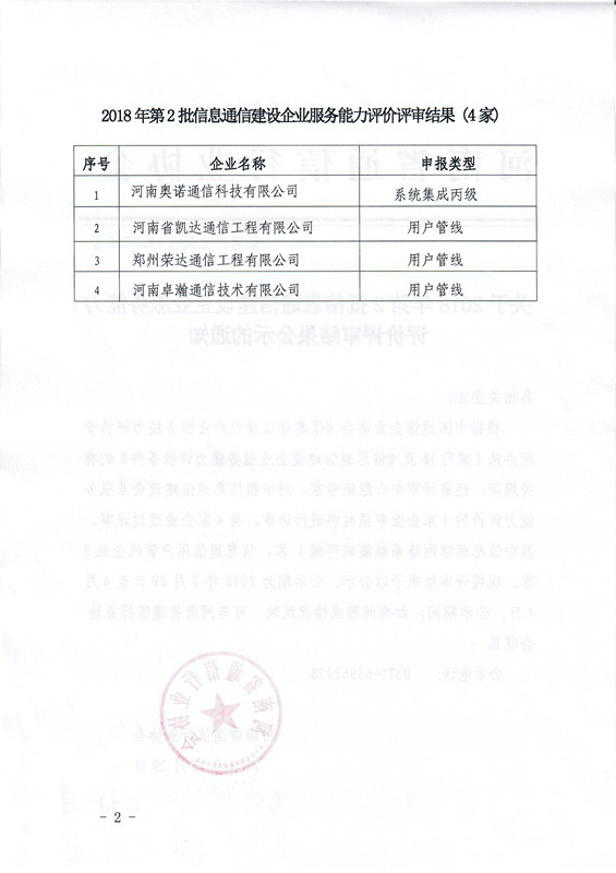 關(guān)于2018年第2批信息通信建設(shè)企業(yè)服務(wù)能力評價評審結(jié)果公示的通知