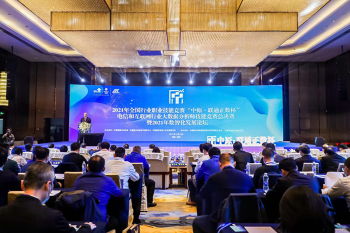 12月15日, 由中國通信企業(yè)協(xié)會、中國就業(yè)培訓(xùn)技術(shù)指導(dǎo)中心與中國國防郵電工會全國委員會聯(lián)合主辦, 河南省通信管理局、河南省大數(shù)據(jù)管理局、河南省通信行業(yè)協(xié)會聯(lián)合指導(dǎo),中國聯(lián)合網(wǎng)絡(luò)通信有限公司河南省分公司、正數(shù)網(wǎng)絡(luò)技術(shù)有限公司承辦的2021年全國行業(yè)職業(yè)技能競賽—第二屆全國電信和互聯(lián)網(wǎng)行業(yè)職業(yè)技能競賽(大數(shù)據(jù)分析師賽項,職工組)總決賽在鄭州成功舉辦。本競賽是經(jīng)由人力資源和社會保障部批準的國家級二類技能競賽,也是人社部國家級賽項中唯一一個與大數(shù)據(jù)分析相關(guān)的賽項,同時也是我們河南省第一次承接國家級職工類的大數(shù)據(jù)賽項。全國政協(xié)經(jīng)濟委員會副主任、工信部原副部長劉利華、河南省政協(xié)副主席龔立群、國際歐亞科學(xué)院院士、科技部原黨組成員張景安、中國通信企業(yè)協(xié)會會長苗建華、河南省通信管理局局長陸建文、副局長方強、河南省大數(shù)據(jù)管理局副局長朱明,中國通信企業(yè)協(xié)會副秘書長趙俊湦,以及中國移動、中國聯(lián)通、中國電信、中國鐵塔、河南省通信行業(yè)協(xié)會等相關(guān)領(lǐng)導(dǎo)出席了本次總決賽,中國通信企業(yè)協(xié)會副會長兼秘書長趙中新主持會議。