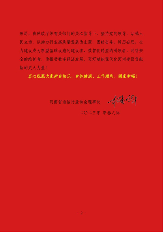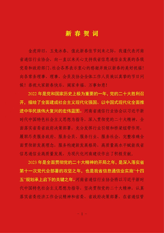 河南省通信行業(yè)協(xié)會(huì)2023年新春賀詞