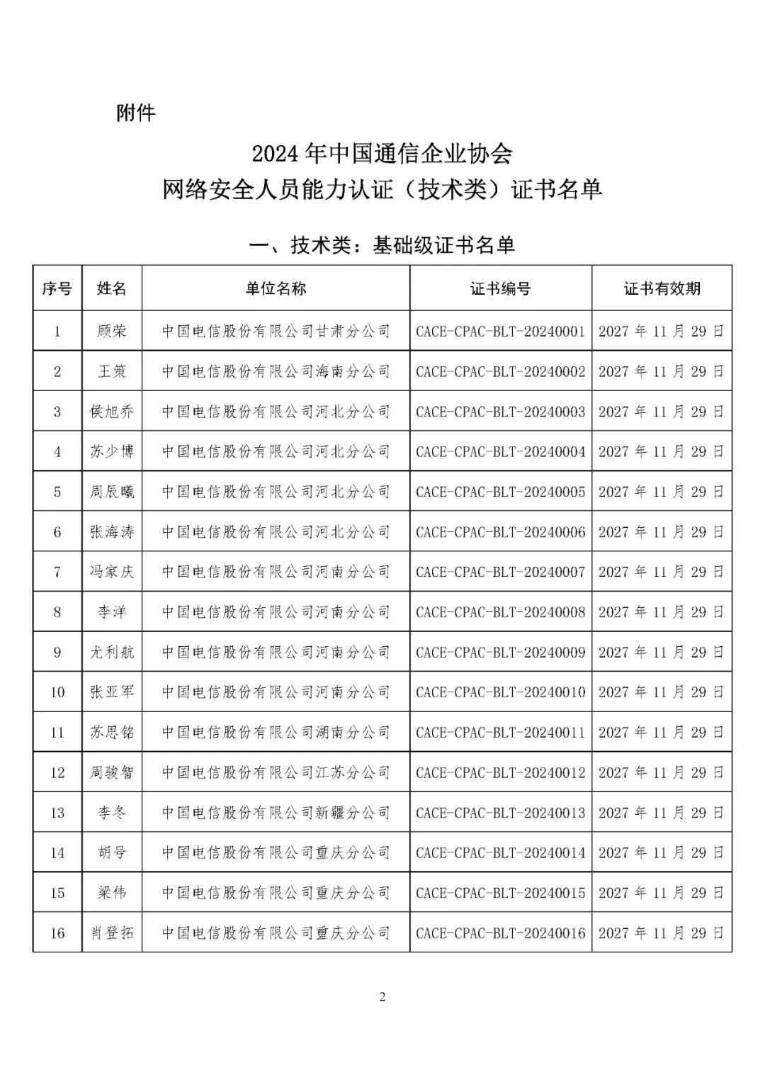 現(xiàn)將獲得2024年中國(guó)通信企業(yè)協(xié)會(huì)網(wǎng)絡(luò)安全人員能力認(rèn)證(技術(shù)類)證書(shū)結(jié)果予以公布,名單詳見(jiàn)附件。