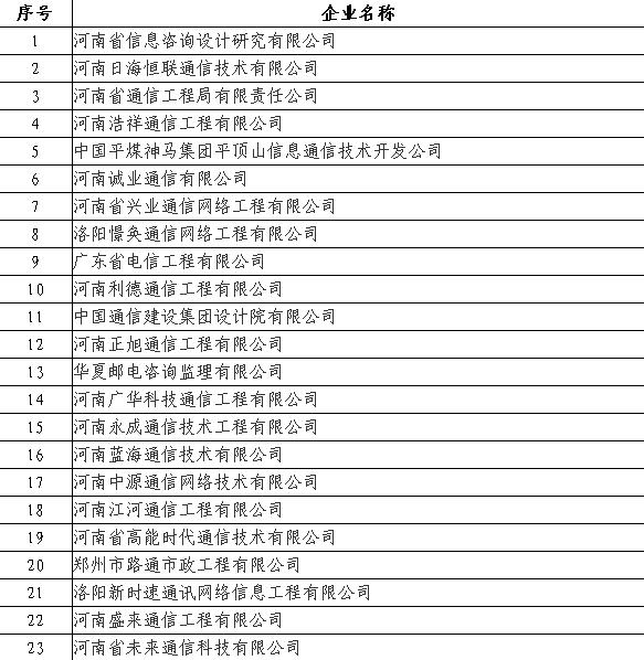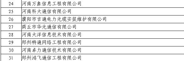 2012-2014年度河南省通信行業(yè)(建設(shè))誠信企業(yè)入選名單(31家