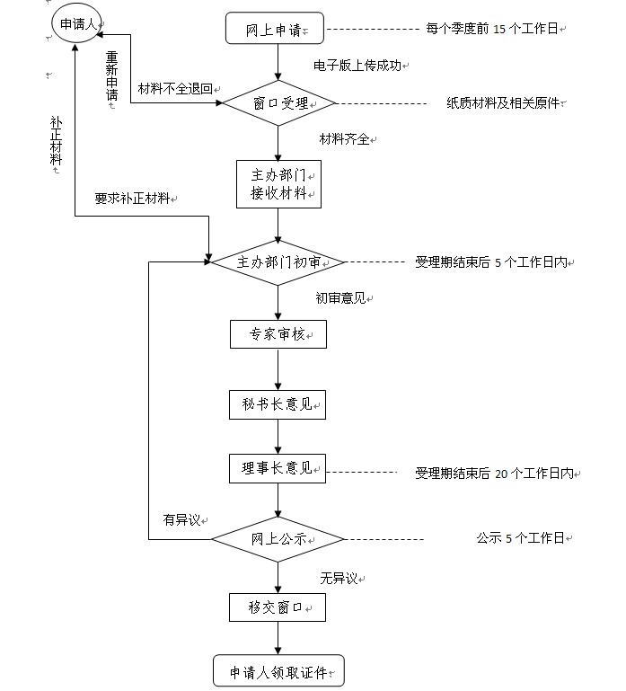 受理方式為定期集中受理,受理期限分別為每季度第一個(gè)月的前15工作日(遇節(jié)假日除外),逾期不予受理。