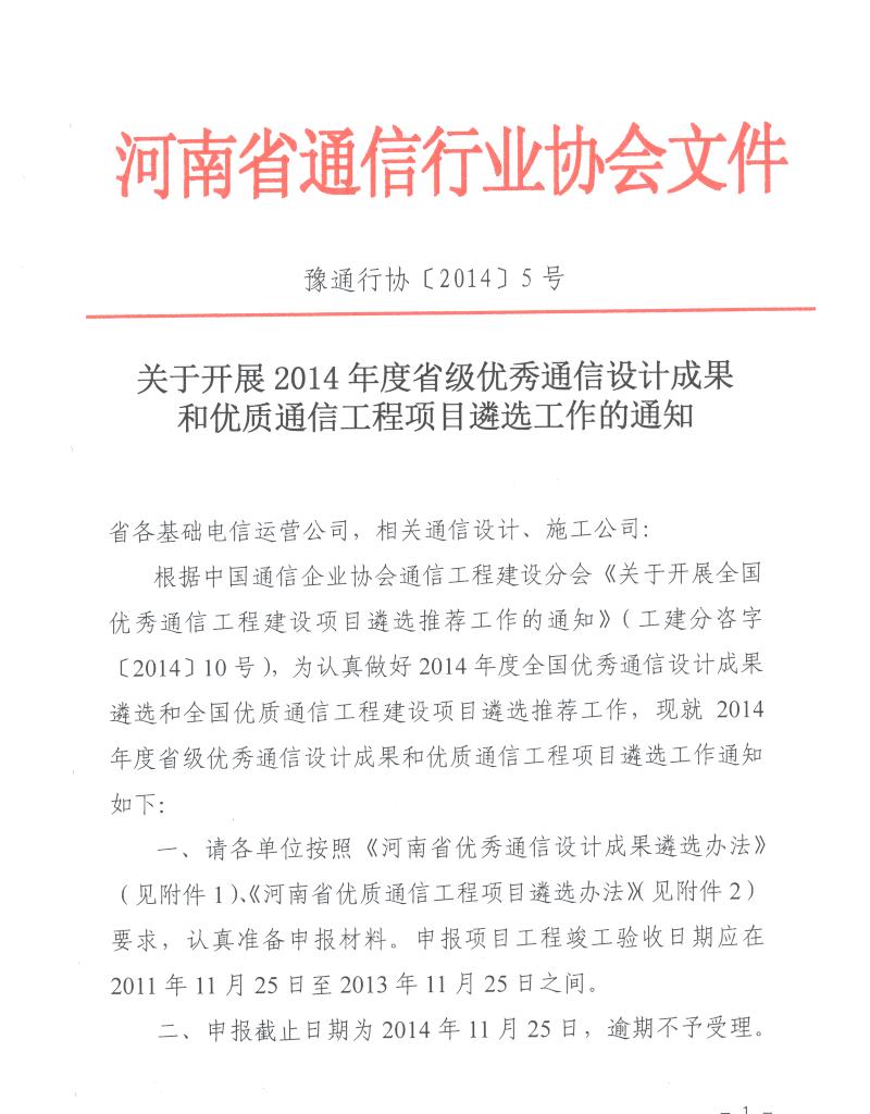 2.河南省優(yōu)質(zhì)通信工程項(xiàng)目遴選辦法