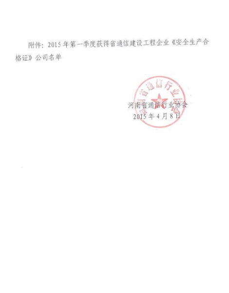 2015年第一季度河南省通信建設(shè)工程企業(yè)《安全生產(chǎn)合格證》通過名單